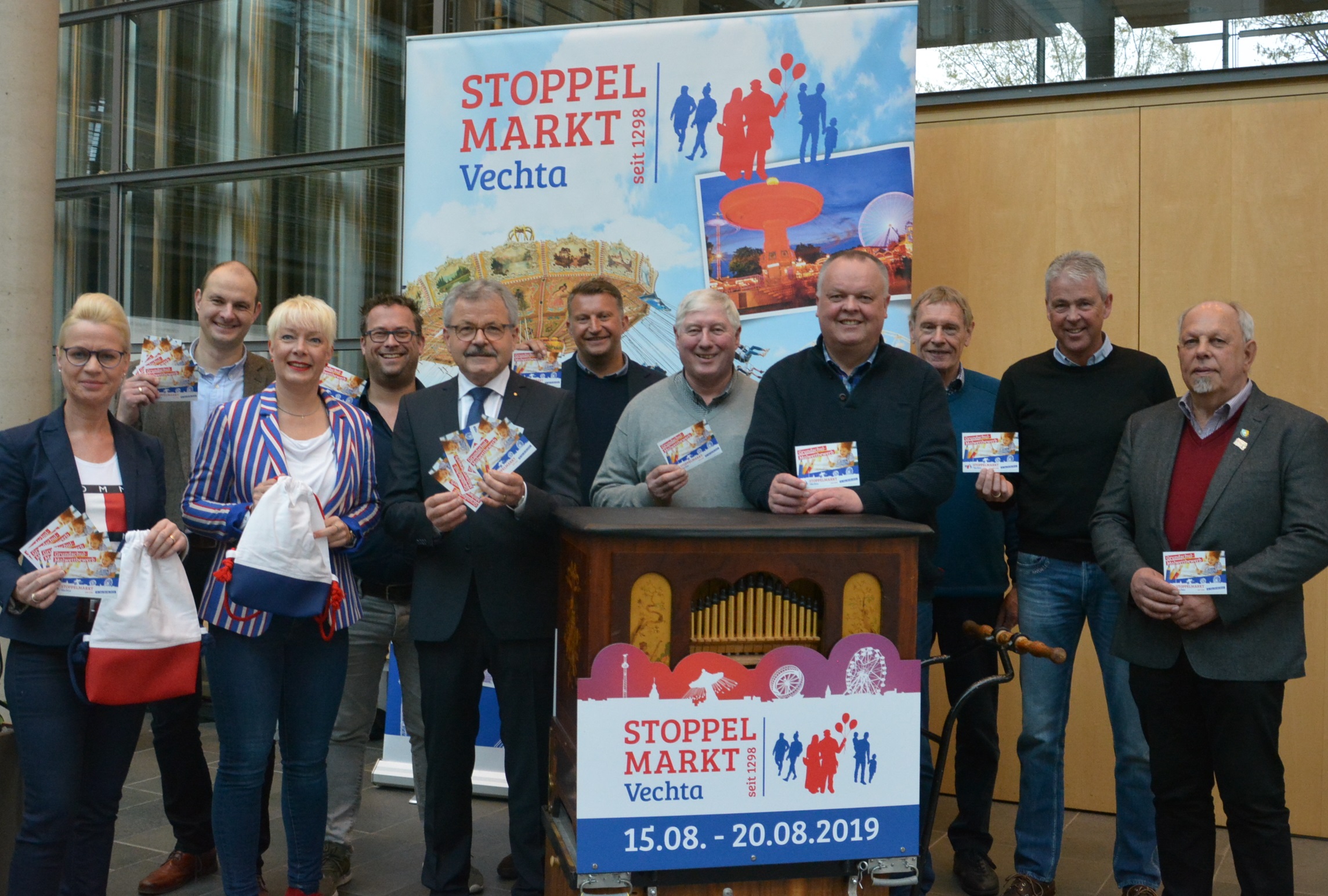 (von links) Bianka Kienitz, Marktmeister Jens Siemer (beide Stadt Vechta), Anja Sommer (Ausschuss für Wirtschaftsförderung und Marktwesen), Jürgen Meyer (1. Vorsitzender des Vereins reisender Schausteller Vechta e.V.), Hans Joachim Zumbrägel, Thomas Frilling (beide Ausschuss für Wirtschaftsförderung und Marktwesen), Karl-Heinz Wehry (Verein reisender Schausteller Vechta e.V.), Ludger Emken (Vorsitzender Vereinigung der Stoppelmarktwirte) und Heinz Bokern (Verein reisender Schausteller).