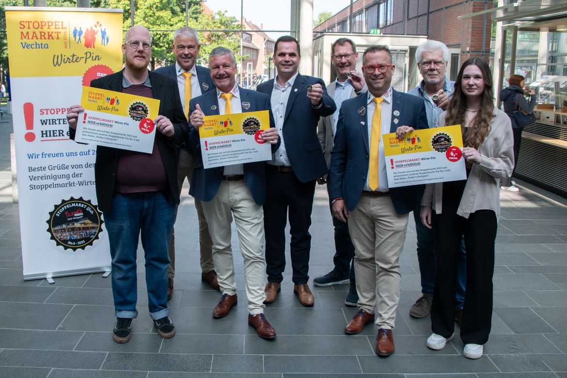 Zum ersten Mal bietet der Wirte-Verein Metall-Anstecker bei seiner Stoppelmarkt-Verkaufsaktion an. Sie lösen die LED-Blinkies ab, die zwar beliebt, aber leider oftmals zu schnell defekt waren, wie die Vorstandsmitglieder Ludger Emken, Stefan Surmann und Rainer Hake bei der Präsentation berichteten. Deshalb sollte etwas her, woran Stoppelmarktfans länger eine Freude haben.