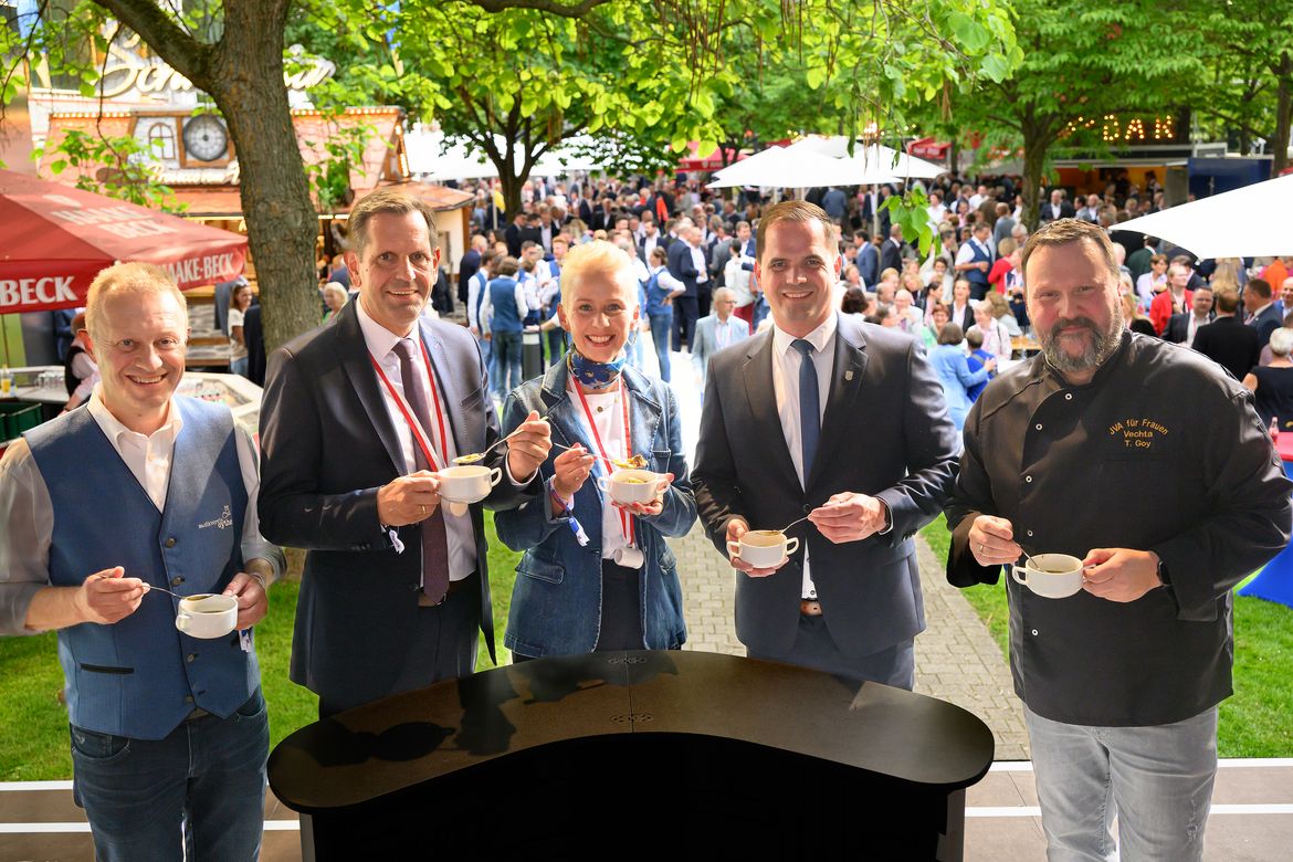 Bürgermeister Kater und die Mitglieder des Vechtaer Stadtrates waren zum „Stoppelmarkt in Berlin“ in die Hauptstadt gereist. Als prominenter Ehrengast besuchte Niedersachsens neuer Ministerpräsident Olaf Lies (SPD) das gesellschaftliche Ereignis, zu dem die Stadt Vechta alle drei Jahre einlädt, um für die heimische Region und den Stoppelmarkt zu werben. Es war zugleich Lies‘ erster offizieller Anlass als Landesvater in der Niedersächsischen Landesvertretung in Berlin.