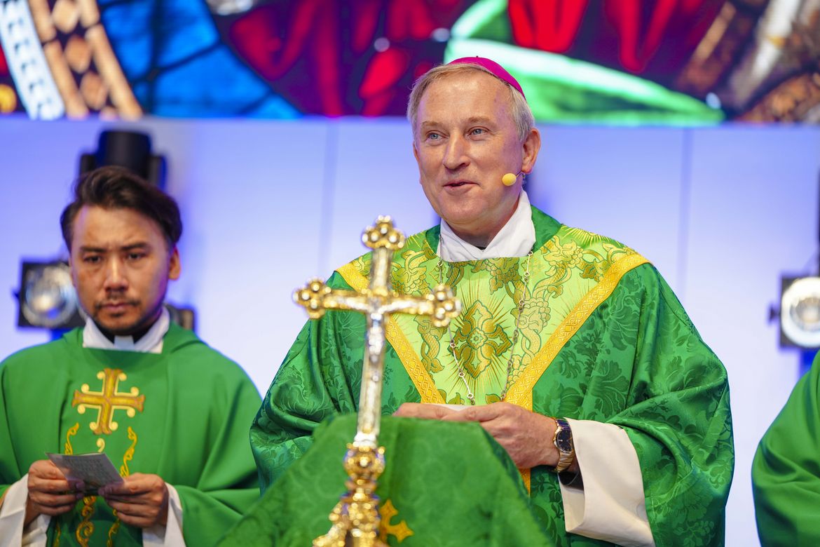 Rund 400 Gläubige haben den traditionellen Stoppelmarkt-Gottesdienst am Sonntagmorgen (18. August) gefeiert. Schaustellerpfarrer Sascha Ellinghaus empfing die Gläubigen in Kühlings Niedersachsenzelt gemeinsam mit Weihbischof Wilfried Theising. Ellinghaus freute sich mit den Gläubigen wieder die „geistige Ebene“ des Stoppelmarktes feiern zu können. Er begrüßte Vechtas Bürgermeister Kristian Kater, dessen Anwesenheit und Teilnahme an der Messe ein Zeichen der Verbindung zwischen Stadt und Kirche sei.