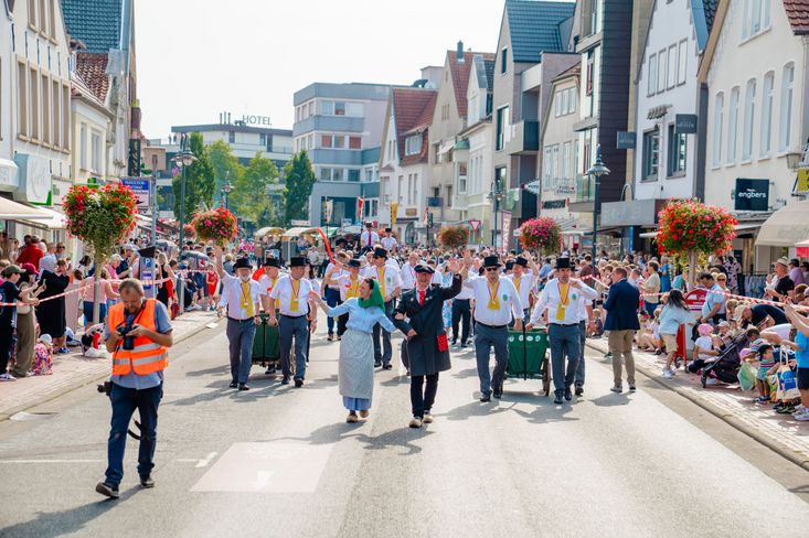 Das Phänomen Umzug ist wieder am Donnerstag, 13. August 2026, in der Vechtaer Innenstadt und entlang der traditionellen Strecke zu bewundern. Wer mit einer Gruppe oder einem Verein teilnehmen möchte, kann sich hier anmelden (das Anmeldeformular finden Sie weiter unten).